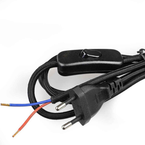 Ce cordon d'alimentation électrique de haute qualité, avec fiche plate 2 pôles et tresse en tissu noir, assure une alimentation fiable et sécurisée pour vos appareils.