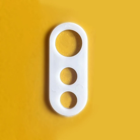 Chape de suspension en nylon de couleur blanc, elle possède trois trous dont deux servent à passer le câble en boucle pour le pour le bloquer.