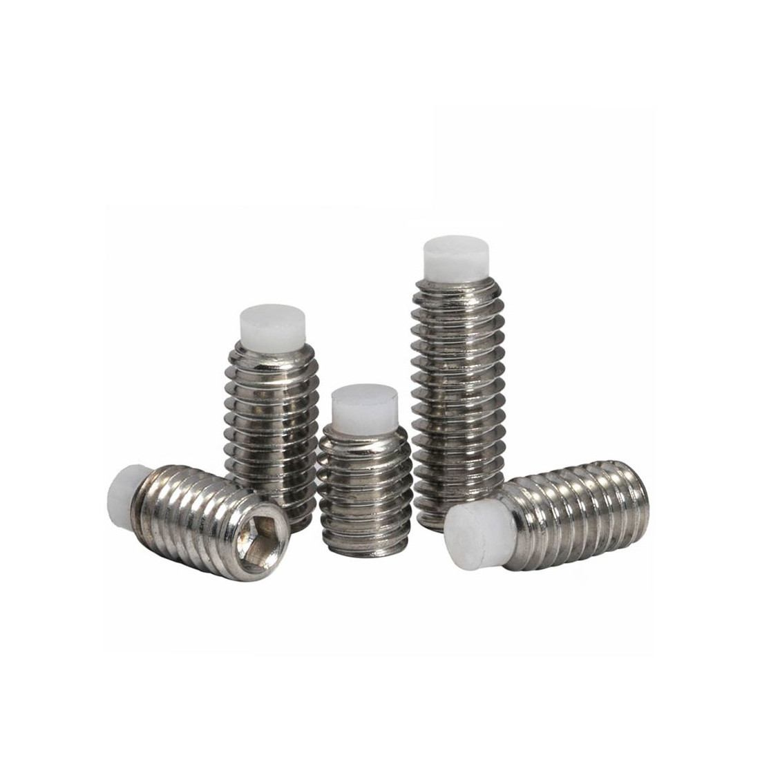 Vis en acier inoxydable M3 sans tête six pans creux HC bout téton de pression en nylon - longueur du filetage M3x4mm, M3x5mm, M3x8mm, M3x10mm, (suivant déclinaison).