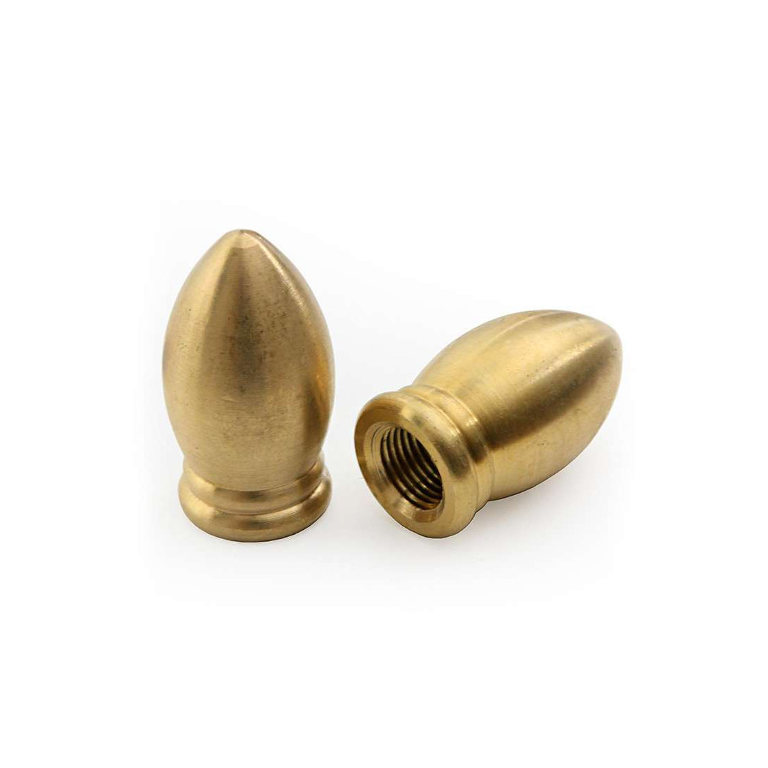 Une terminaison en laiton de forme ogive en diamètre 18mm taraudé M10, un élément idéal pour finaliser et magnifier le pied ou la tête d’un lustre en laiton aux styles anciens.