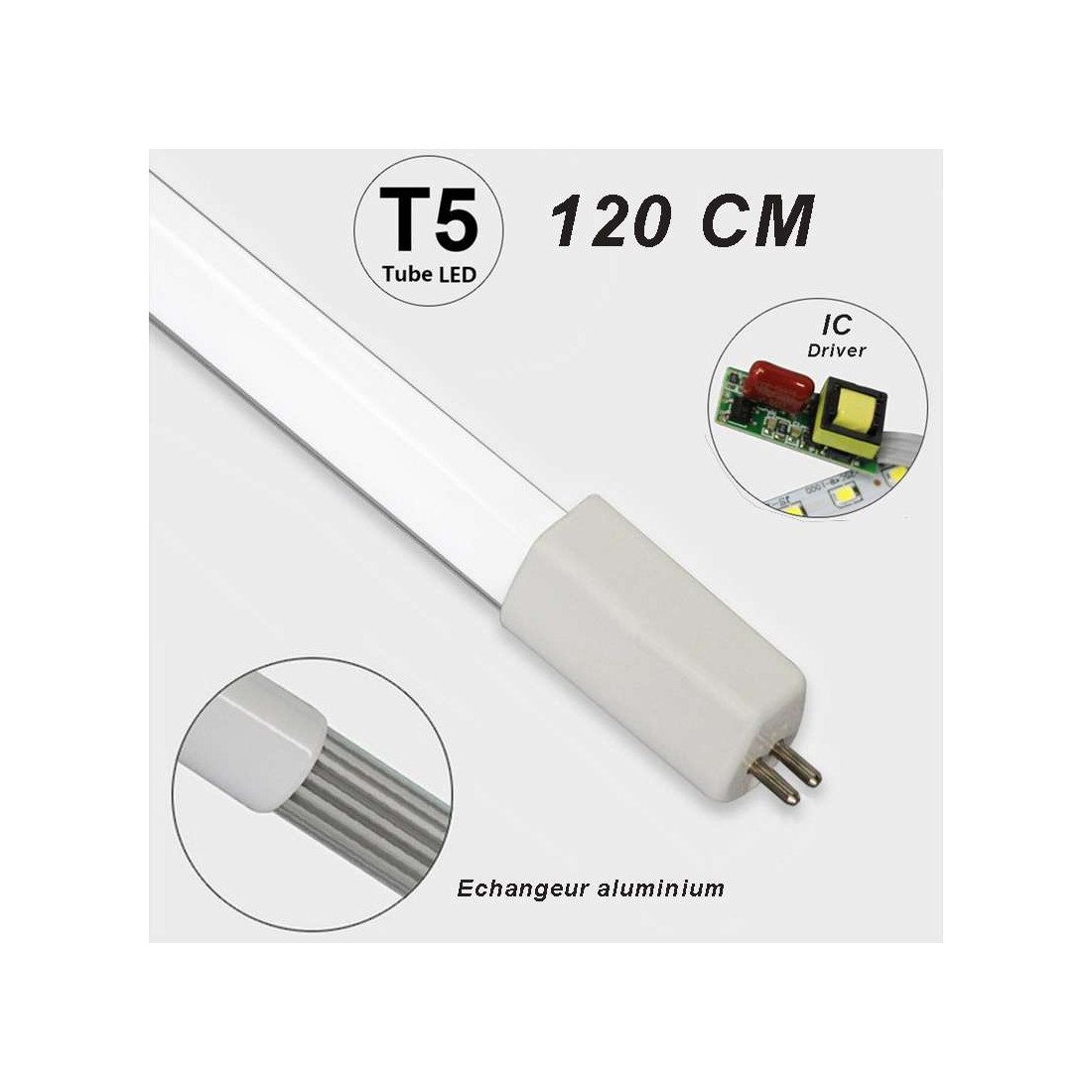 Tube T5 LED de 120 cm diamètre 16 mm à une luminosité légèrement supérieure à celle d’un néon classique de type fluorescent.