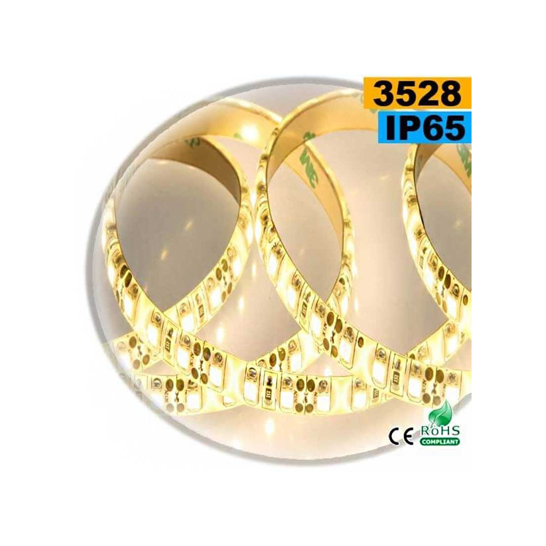 Strip LED flexible autocollant de 30 mètres équipé de 120 LED par mètre type SMD 3528, couleur d'éclairage blanc chaud .