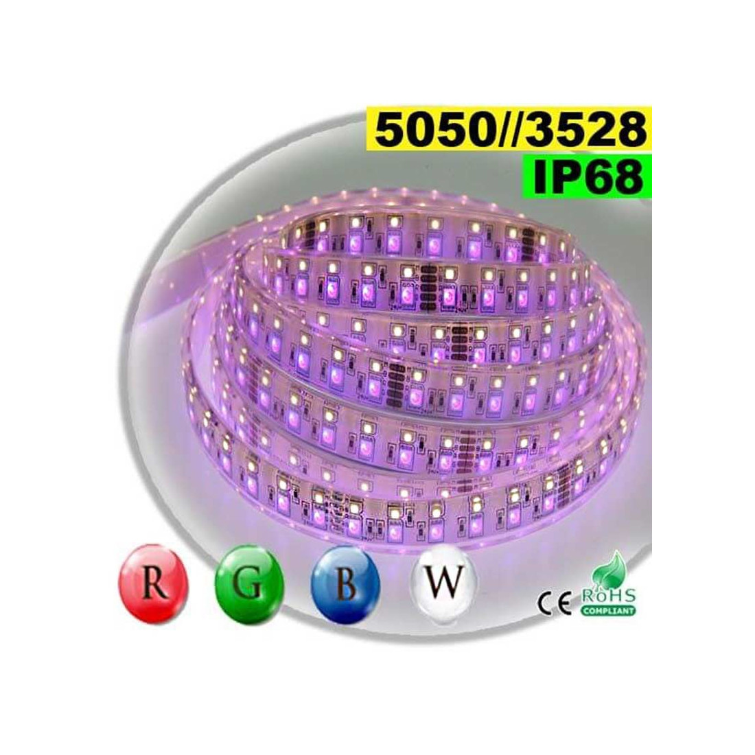 Nombre de LED: 120 LED / mètre - 60 RGB et 60 Blanc Chaud