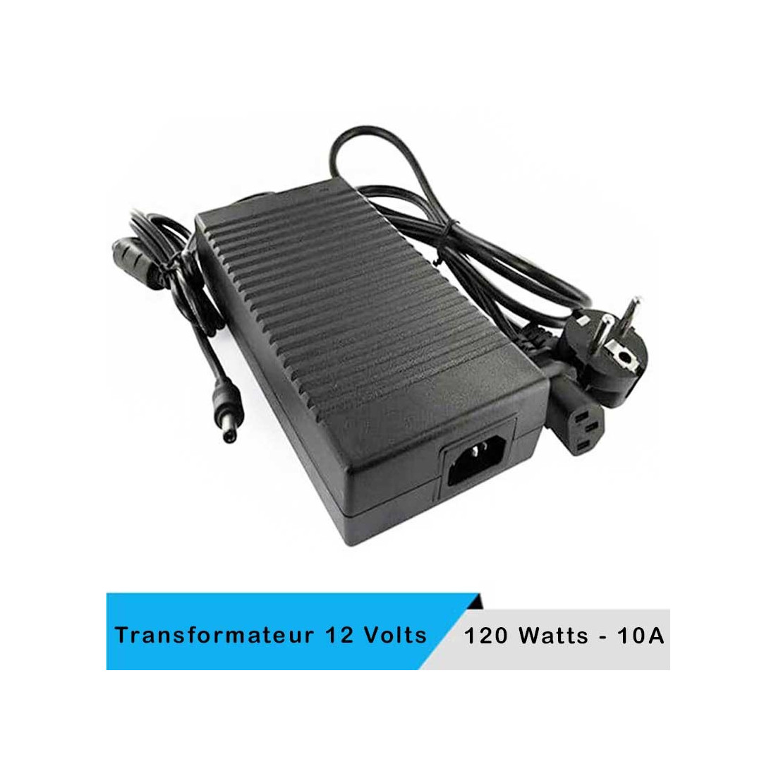 Ce transformateur jack LED 120 watts sur prise, 12 Volts DC stabilisée avec une tolérance vraiment très faible ± 0,5 volt ce qui garantit une fiabilité sans faille pour les produits source LED que vous allez raccorder à cette alimentation.